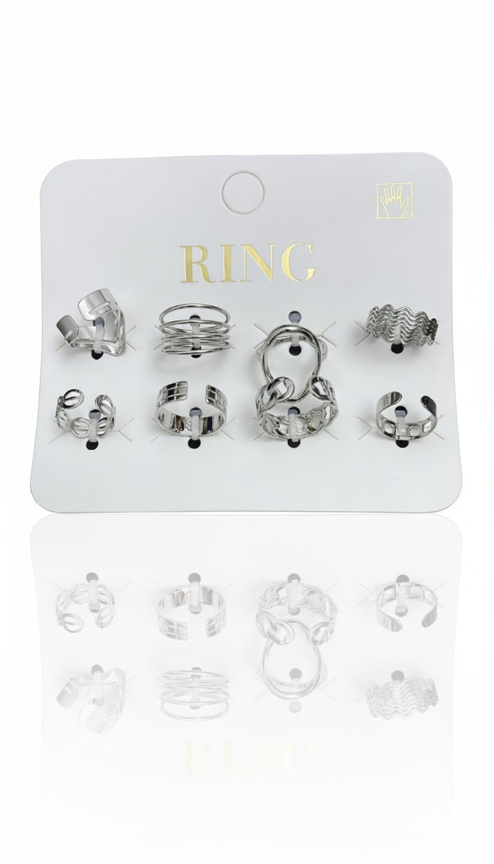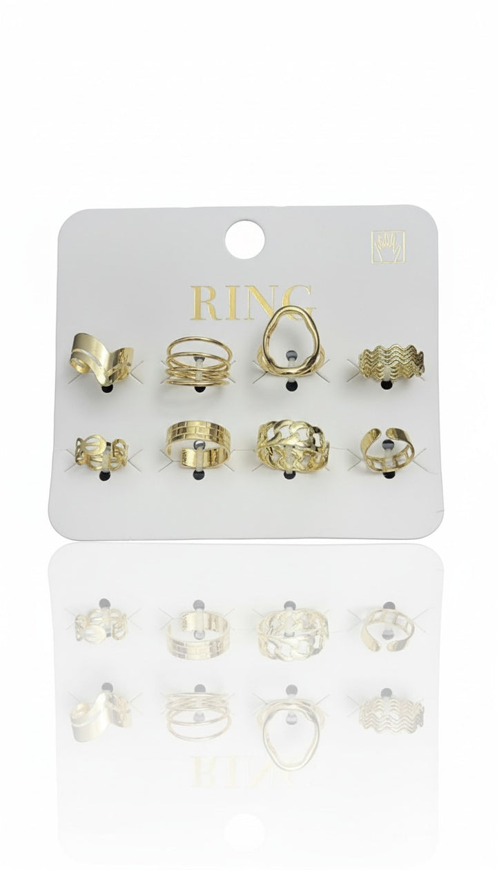 Unleash your inner elegance with the Muse Ring Set. This 8-piece collection features a variety of finely detailed gold-toned rings — from twisted textures to hammered and polished finishes. Designed for effortless stacking or wearing solo, these rings bring a touch of timeless glamour and modern edge to every outfit.