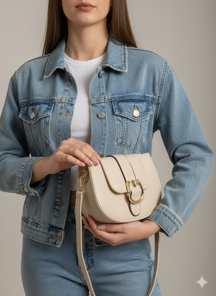 A chic crossbody bag that adds a feminine touch to your daily look. Features a stylish metal buckle and comfortable strap, perfect for outings with enough space for your essentials.