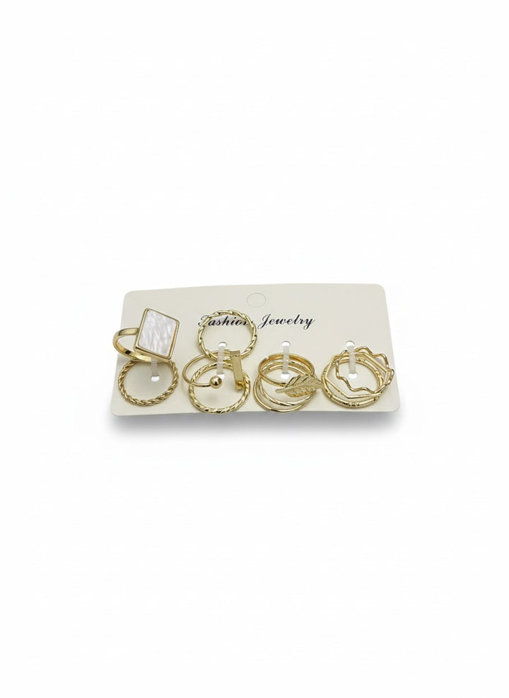 Unleash your inner elegance with the Muse Ring Set. This 11-piece collection features a variety of finely detailed gold-toned rings — from twisted textures to hammered and polished finishes. Designed for effortless stacking or wearing solo, these rings bring a touch of timeless glamour and modern edge to every outfit.