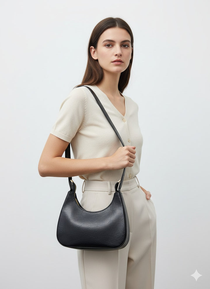 Enhance your style with this elegant and modern shoulder bag featuring a sleek and minimal design. Perfect for everyday use or special occasions, it balances functionality with sophistication. Made from high-quality materials, it includes a top zipper closure and an adjustable strap to complement various outfits. A must-have accessory to elevate your wardrobe.