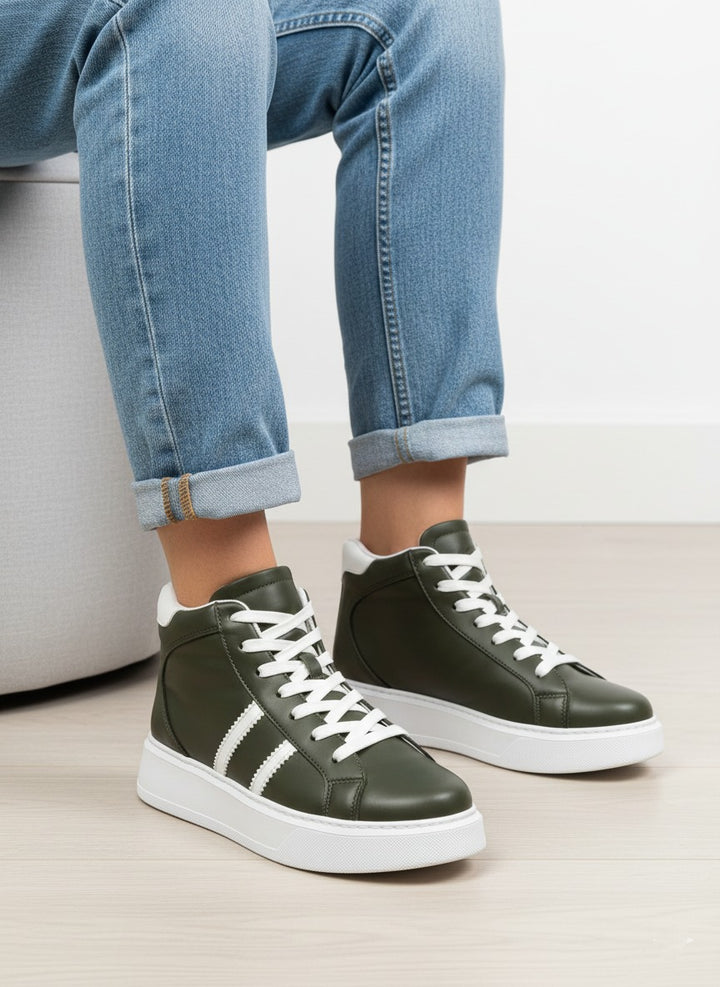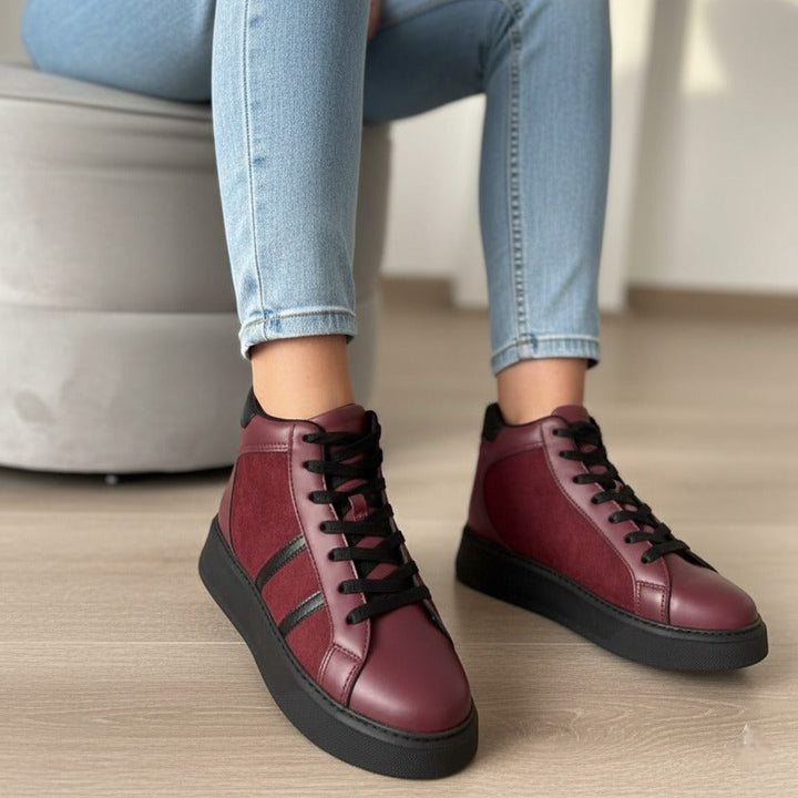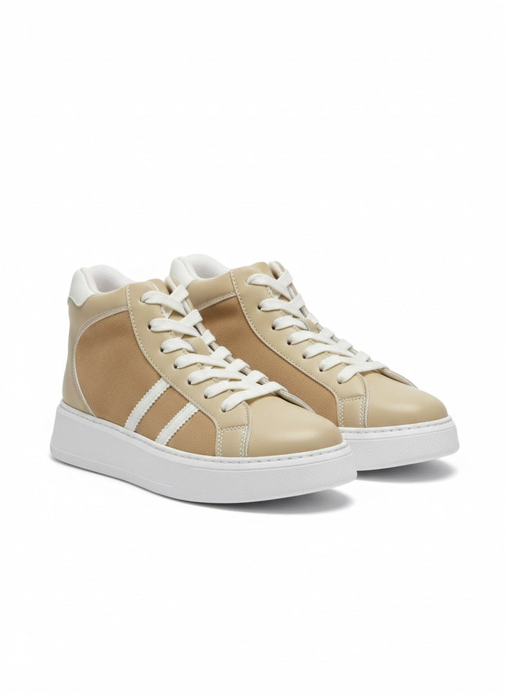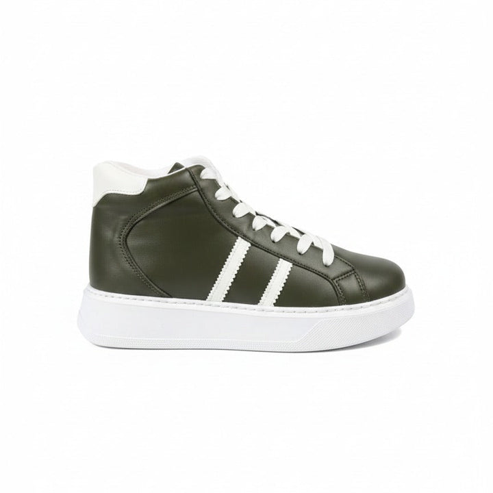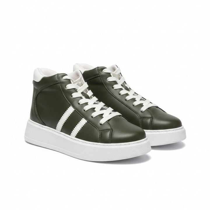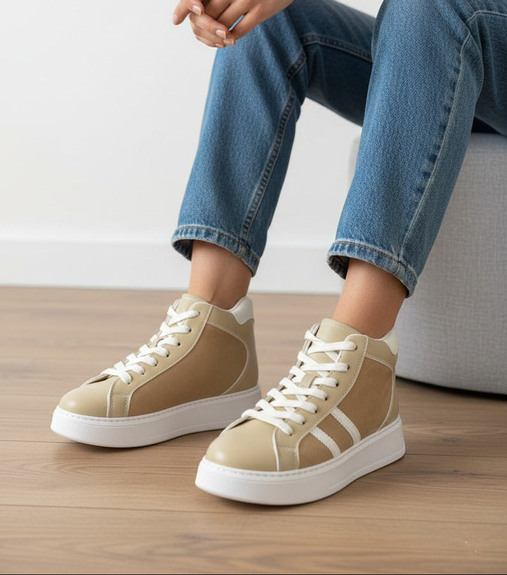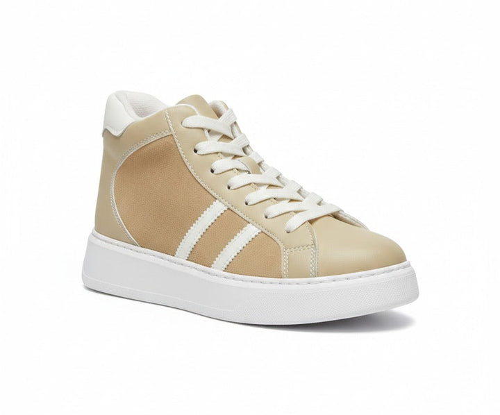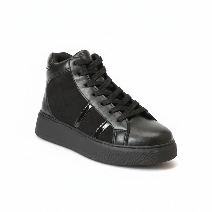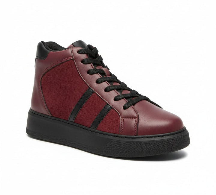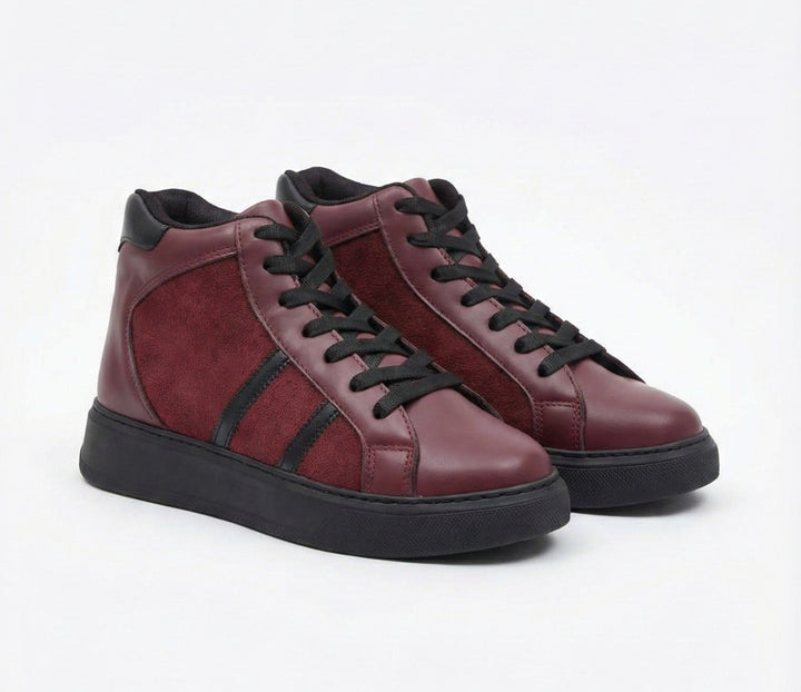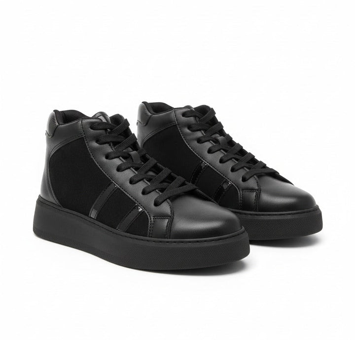 A sleek and modern high-top sneaker designed for everyday comfort and effortless style. It features a smooth faux-leather finish combined with soft suede side panels, creating a refined contrast that adds depth to the overall look. The padded ankle collar and cushioned insole provide excellent support, while the sturdy outsole ensures steady grip and long-lasting wear. Perfect for casual outfits, this versatile sneaker brings a clean, contemporary touch to any wardrobe.