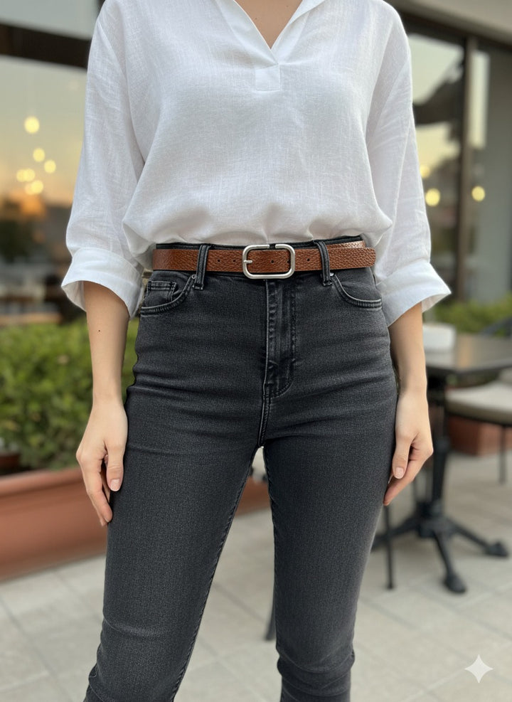 Refine your everyday style with the Classic Slim Waist Belt. Featuring a sleek design and a modern buckle, this belt is available in versatile colors (Black, Beige, Havana, and Brown) to match any outfit. Perfect for adding a polished finish to dresses, trousers, or casual looks.