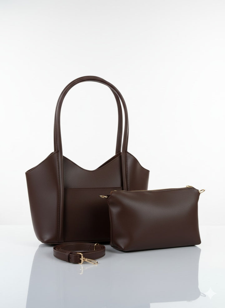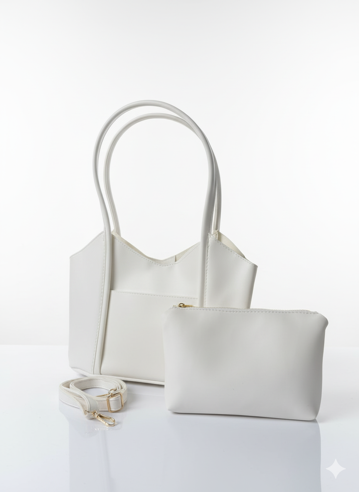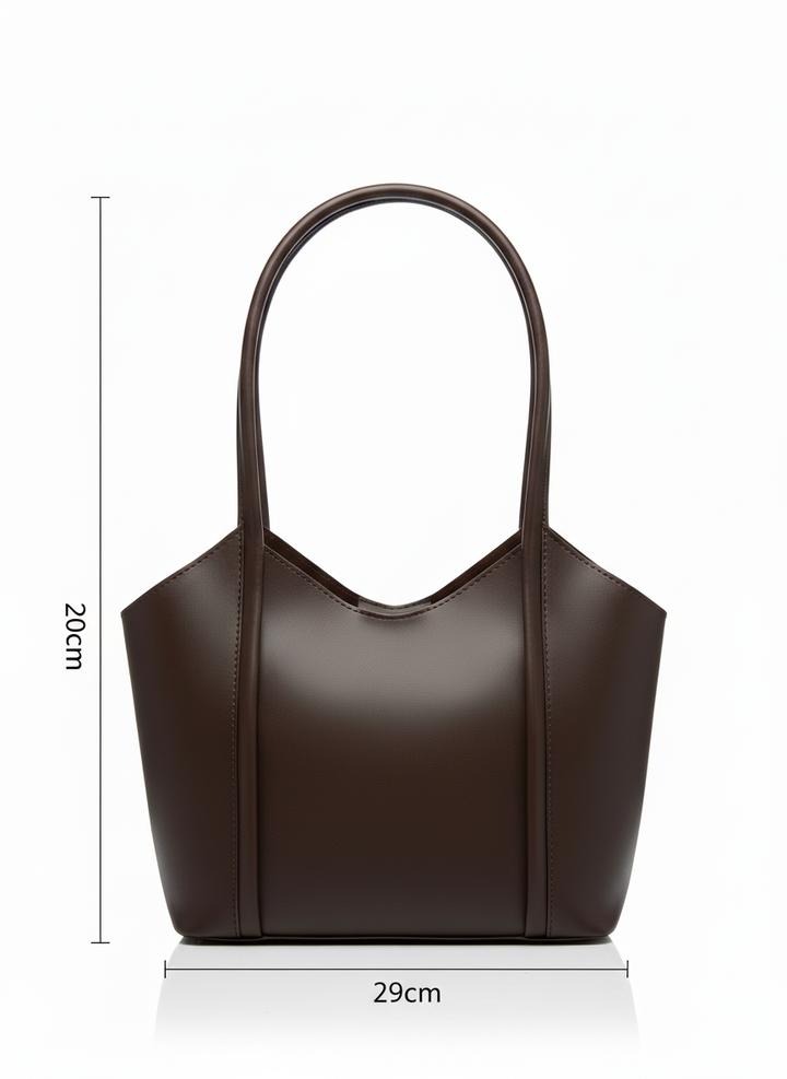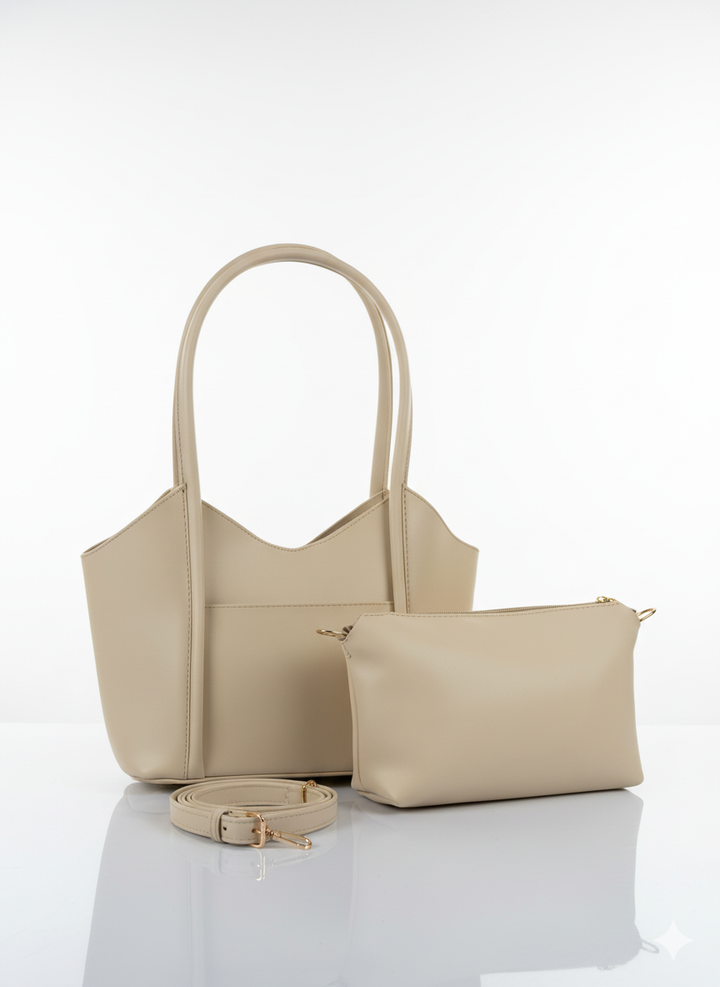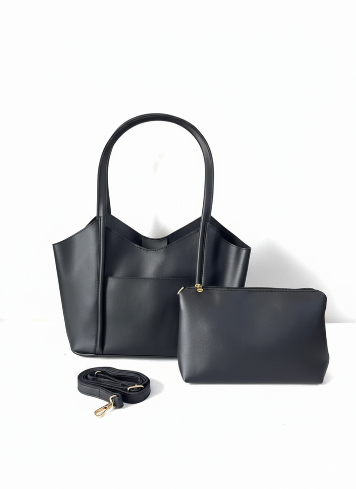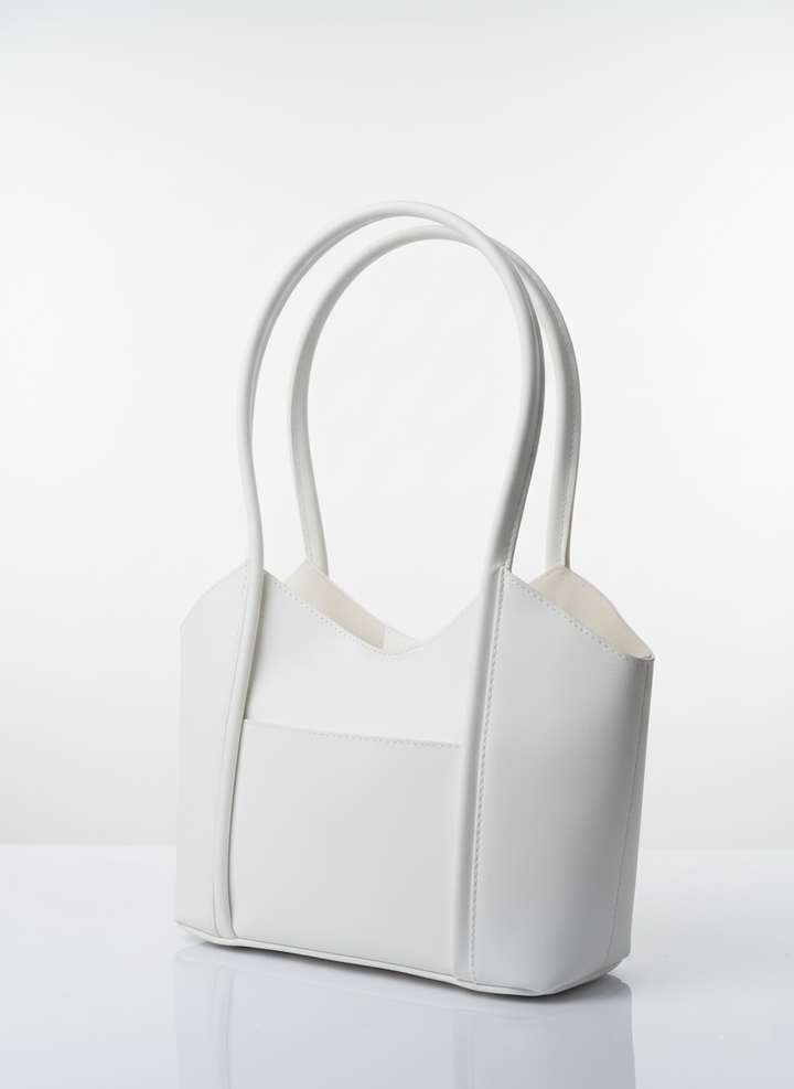 A sleek, structured tote bag with a modern curved design. Spacious, practical, and perfect for everyday use or work.