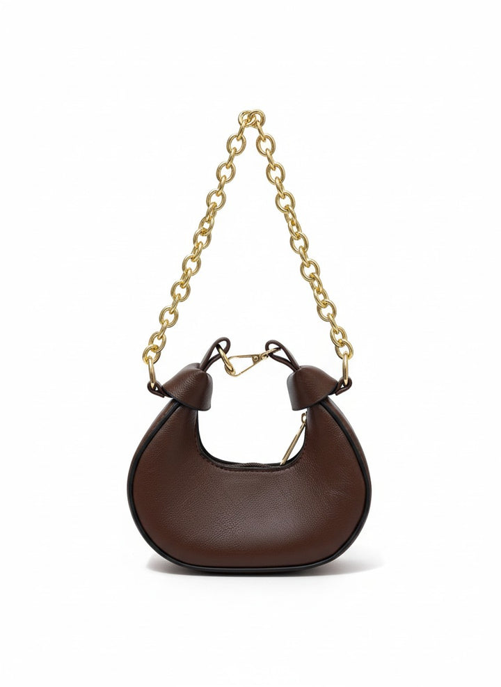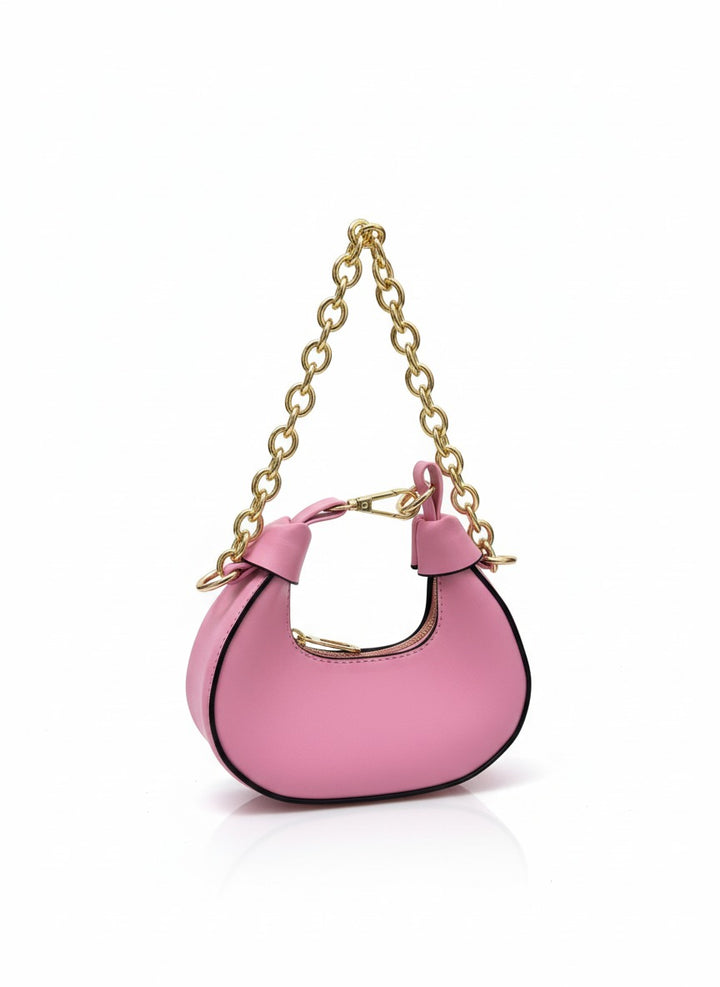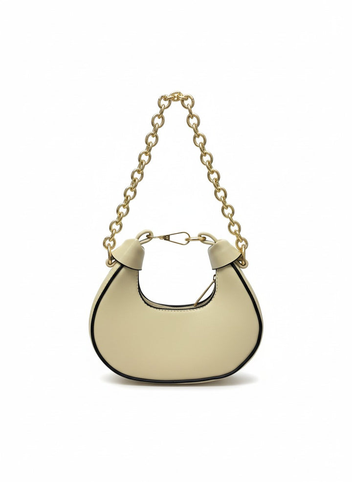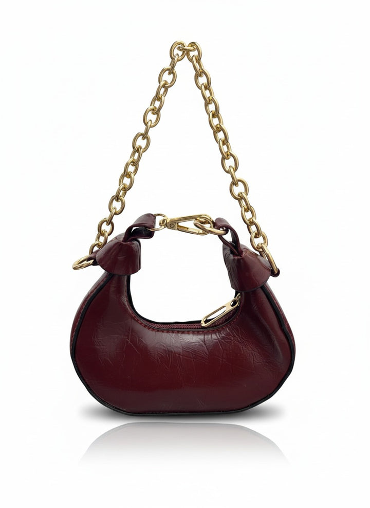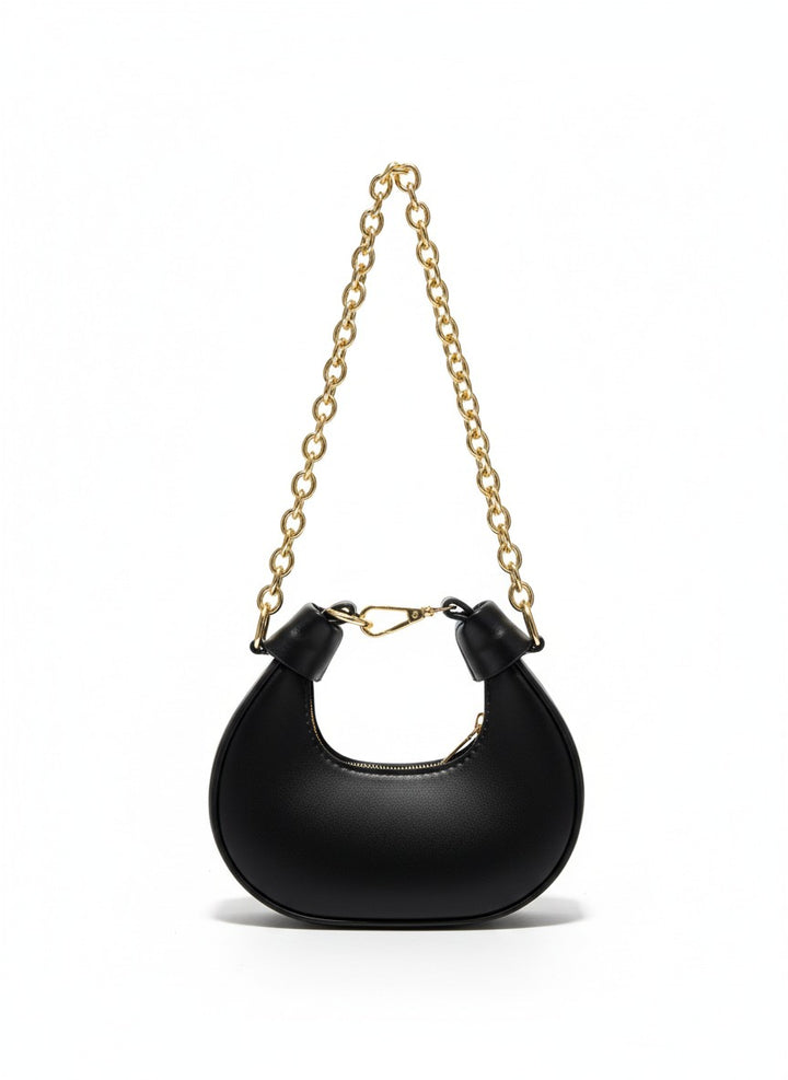 Make a bold statement with the Vbranda Chain Handle Mini Bag. Featuring a luxurious gold-tone chain strap and a sleek rounded silhouette, this bag adds instant glamour to any outfit. Despite its compact size, it’s designed to carry your essentials with ease, making it the perfect companion for evenings out or chic day looks.