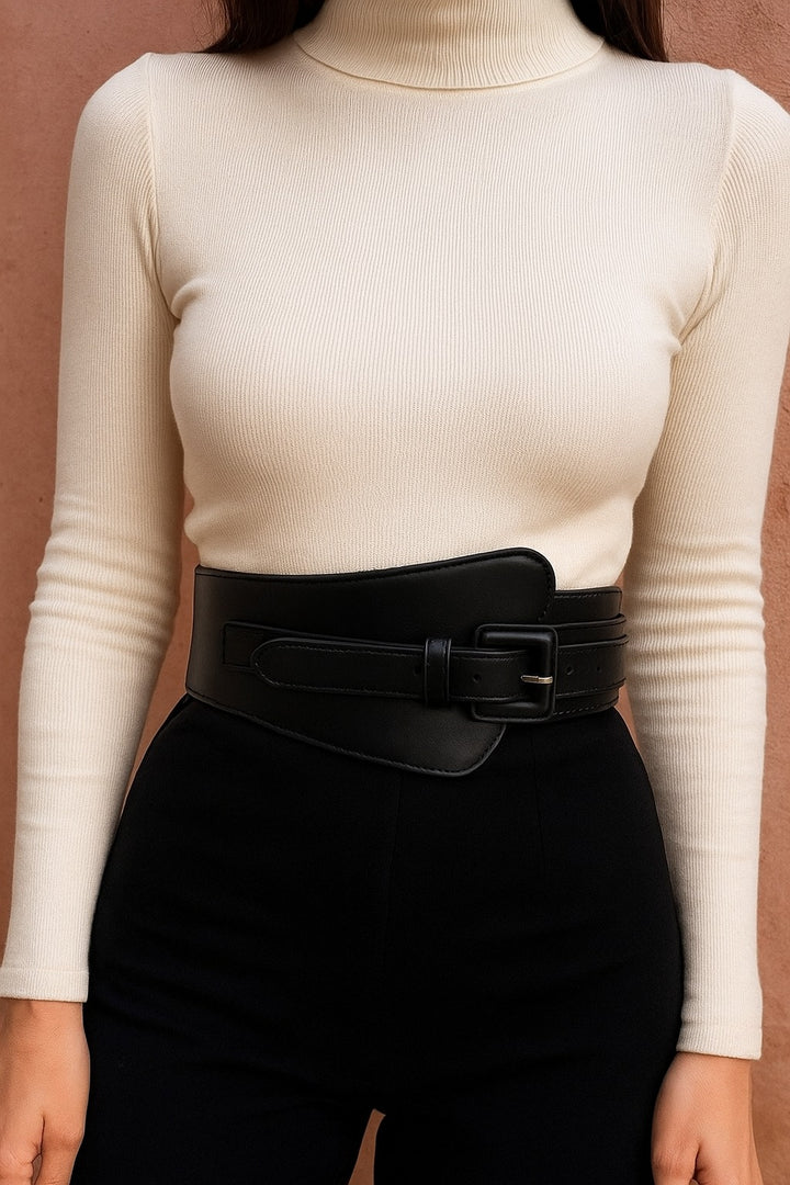 Define your silhouette with the Wide Black Waist Belt. Featuring a bold design with a statement buckle, this belt is perfect for adding shape and style to dresses, tunics, or oversized outfits. A versatile accessory that combines elegance with a modern edge.