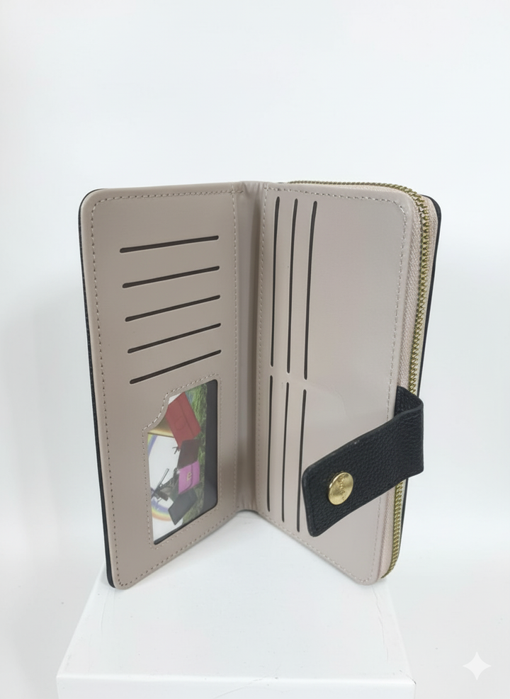 ابعدوا ممتلكاتكم الثمينة عن طريق المحفظة الجلدية الأنيقة التي هي الحجم المثالي لحمل نقودك وعملاتك! تصميمه الأنيق يجعل من السهل الانزلاق إلى جيبك وحمل الأساسيات بأناقة. لا مزيد من البحث في جيوبك للعثور على فواتيرك -- لقد حصلت على تغطية!