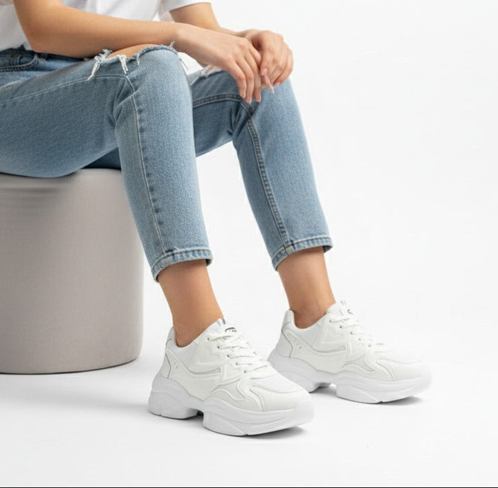 designed with a bold elevated sole and intricate panel details for a modern, trendy look. The breathable upper ensures all-day freshness, while the cushioned insole and durable non-slip outsole provide comfort, support, and stability. Perfect for versatile everyday wear.
