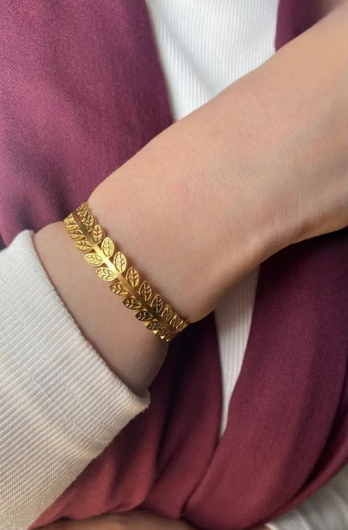 Elegant Stainless Steel Pure bracelet featuring a delicate leaf pattern for a chic and natural touch.