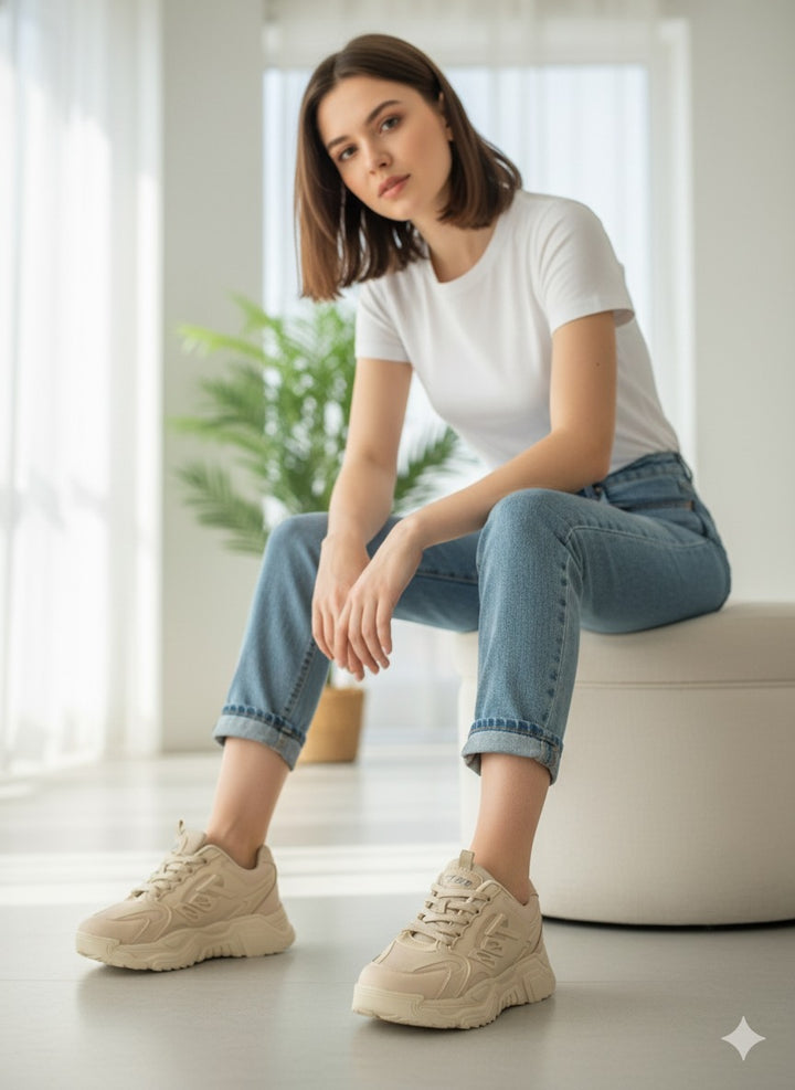 Sneakers feature a sleek, modern design that combines simplicity with comfort. Made from lightweight, durable materials with a thick sole for extra support and stability. Perfect for casual outfits and everyday wear.