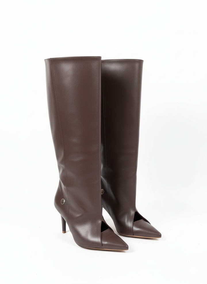 A sophisticated leather boot crafted with premium materials for a sleek and timeless look. Featuring a pointed toe and a slim heel, it adds a touch of femininity and strength to your style. Perfect for both day and evening outfits, completing your look with refined elegance.