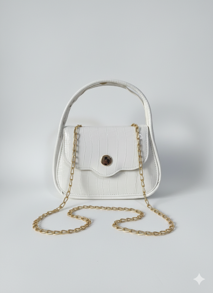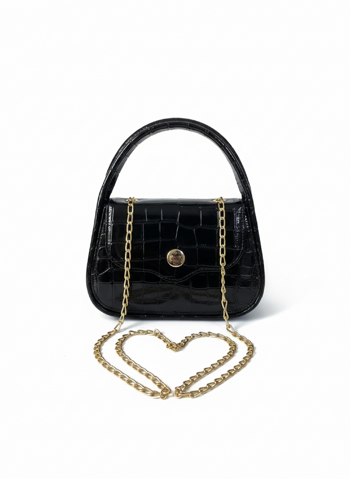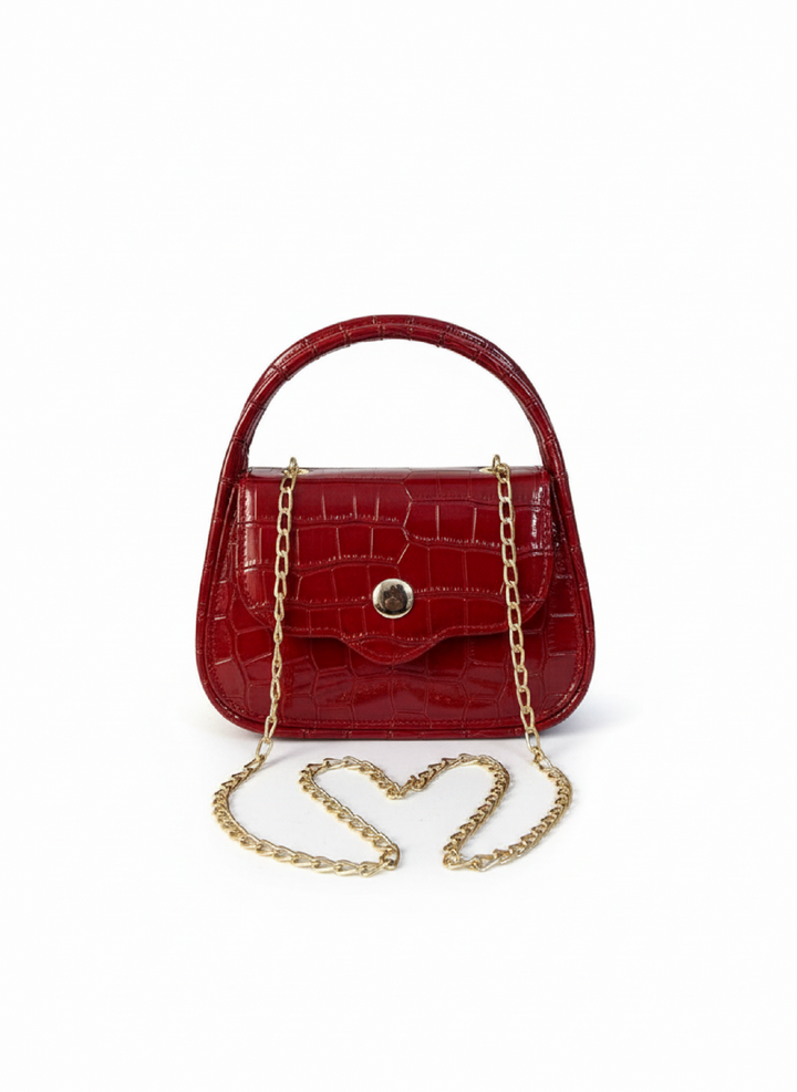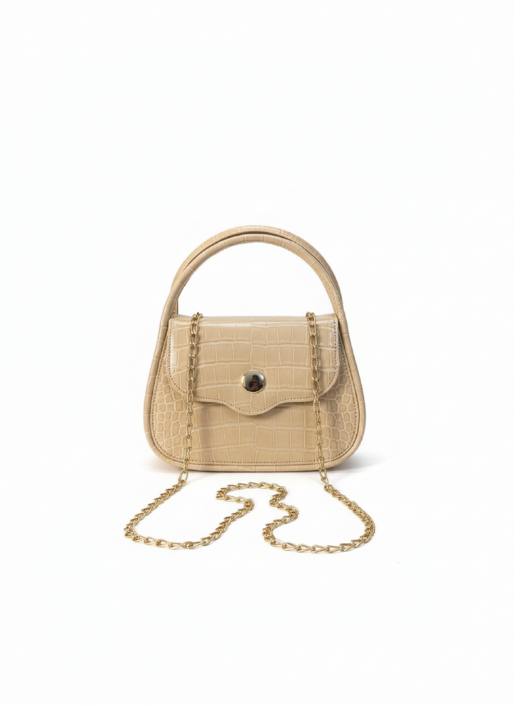 Stylish handbag featuring a luxurious crocodile-textured design with a chic gold metal chain. Can be carried by hand or worn on the shoulder, making it perfect for both everyday looks and special occasions.