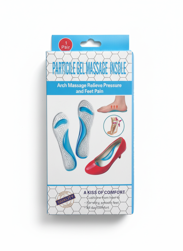 A high-comfort medical insole designed to provide excellent support for the foot throughout the day. It features targeted pressure-relief zones that cushion each area of the foot, helping to absorb shock and reduce strain on the heel and forefoot. Its flexible material ensures a secure fit inside the shoe while delivering a soft, comfortable feel with every step—perfect for long walks, daily use, and extended standing.