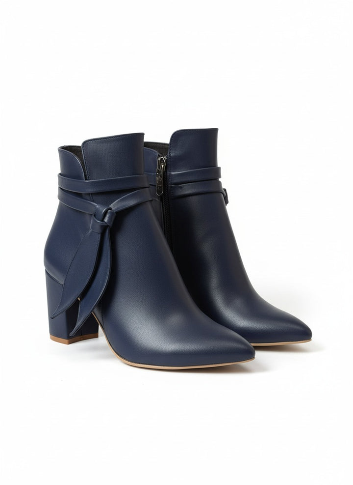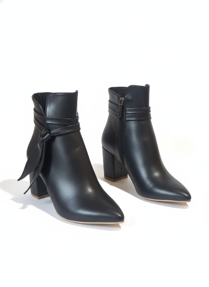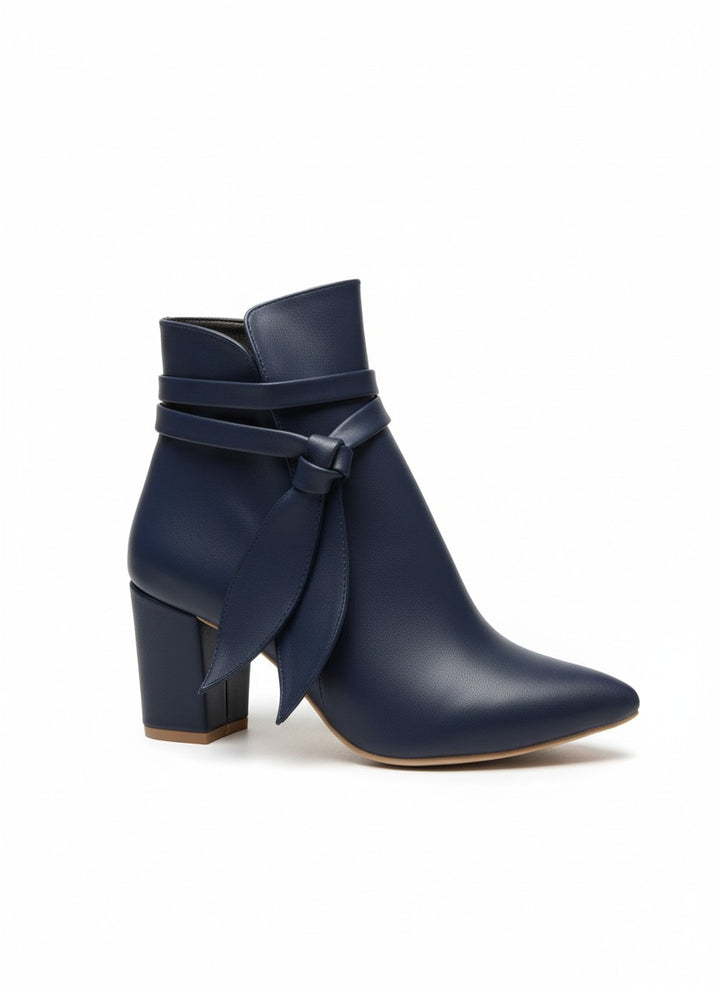 A stylish ankle boot featuring a feminine side bow detail that adds a touch of sophistication and charm. Designed with a sturdy block heel for comfort and stability, making it perfect for both everyday wear and elegant occasions.