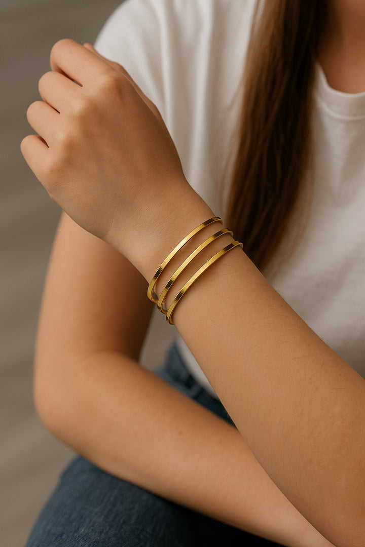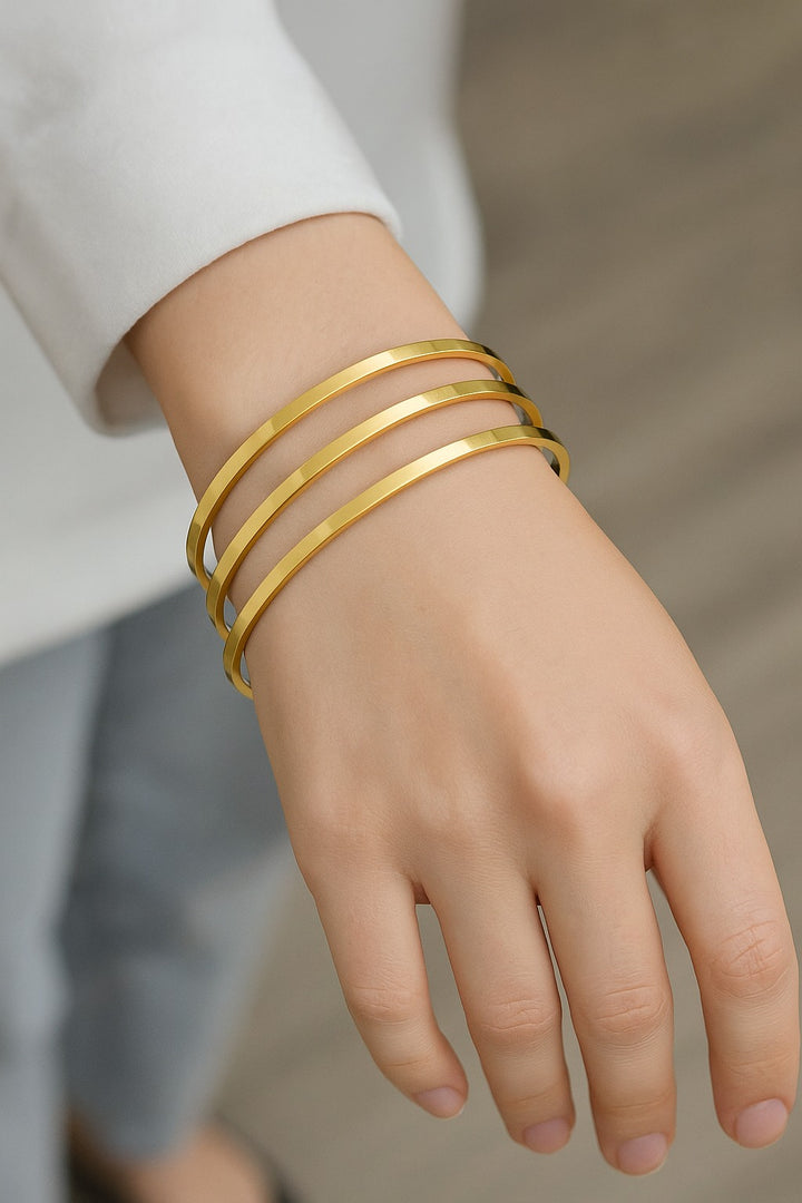 Elegant triple-layered gold-tone stainless steel bangle, perfect for any look.